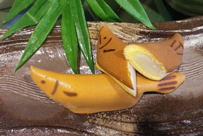 清流を若々しく泳ぐあゆをイメージしt作られた『えびす鮎』中は小麦粉と卵を使った生地をほんのり香ばしく焼き上げ、中には軟らかく上品で繊細な口あたりの羽二重餅を入れました。生地の調合から焼印を押す作業まで和菓子職人が一尾づつ丁寧に命を吹き込んでいます。